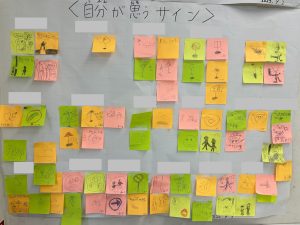 最後に、それぞれがイメージする「サイン」を付箋に描きます。