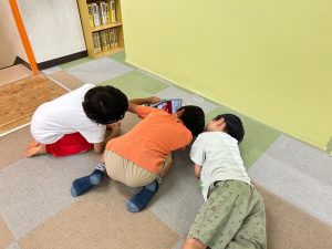 1階の玄関から、3階まで隅々に渡って「サイン探し」をするキッズ。