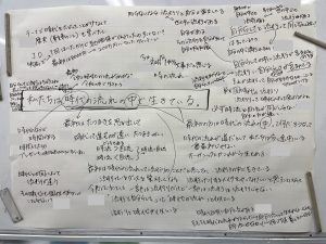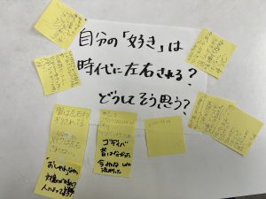 続きNさんが、「『流行と自分らしさ』って『時代の流れ』と似てる。最初は時代の流れって流行だけだと思ってたんだけど。」と、今回のテーマ学習の真髄に迫っていきます。