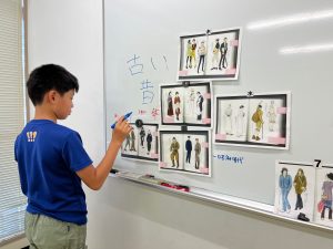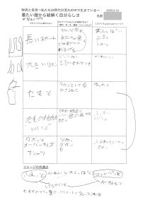 時流は変遷と社会背景を調べてきましたが、自流って何?自分らしさ?というキッズも多かったので、「着たい服から紐解く自分らしさ」自流を言語化することにチャレンジしました。それから、お互いに「らしさ」を表す表現を言い合ったり、イメージを表す単語200語から、自分の感覚にフィットするような言葉を書き出してみたり。ぼんやりと見えてきましたが、まだ難しい部分も。