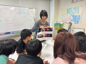 キッズの自発的な行動で、第一次世界大戦についてノートにまとめたり、原爆の被害について調べてきたことを全員にシェアしてくれたことで、他の人も理解が進んだシーンも。太平洋戦争時に広島市に投下された原爆。行ったことのある厳島神社まで届いたのかな?という疑問を出発点として、詳しく調べることができ、当時の悲惨な状況と今も苦しむ方がいることを学びました。