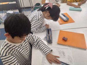 既に建築家になったつもりで、「自然のような家」を描くことに集中しているキッズたち。