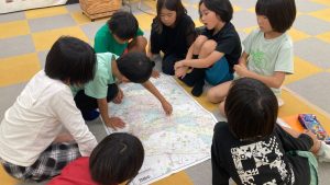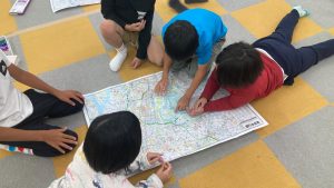 このことをきっかけに鳥瞰図をみてみると、西側の方には山が広がっており、私たちの住む中の近くがたくさんの建物の密集した地域になっていました。