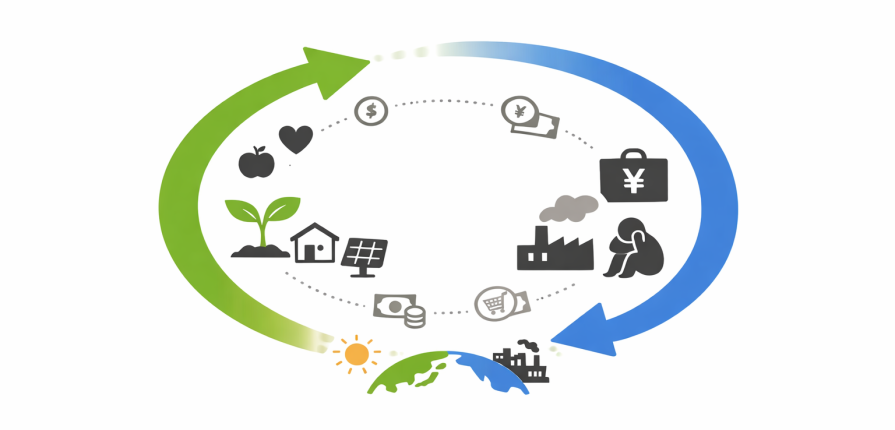 しかし、循環はいつも幸福な物語になるとは限りません。 必要のないものを大量に作って捨てたり、嘘の情報でお金を儲けたり、誰かが得をする裏で誰かが泣いていたり…。お金というエンジンは、時にそんな「悪い循環」をも加速させ、社会を壊してしまう恐ろしさも持っています。だからこそ、この探究は一筋縄ではいきません。 「お金がなかった時代」の不便さにタイムスリップしたり、現代の複雑なお金の流れを解剖して「滞り」や「歪み」を見つけ出したりと、行ったり来たりしながら経済の正体に迫っていきます。 私たちが目指すのは、お金の奴隷になることではなく、お金という道具を使って豊かな未来をつくる「循環のデザイナー」になることです。